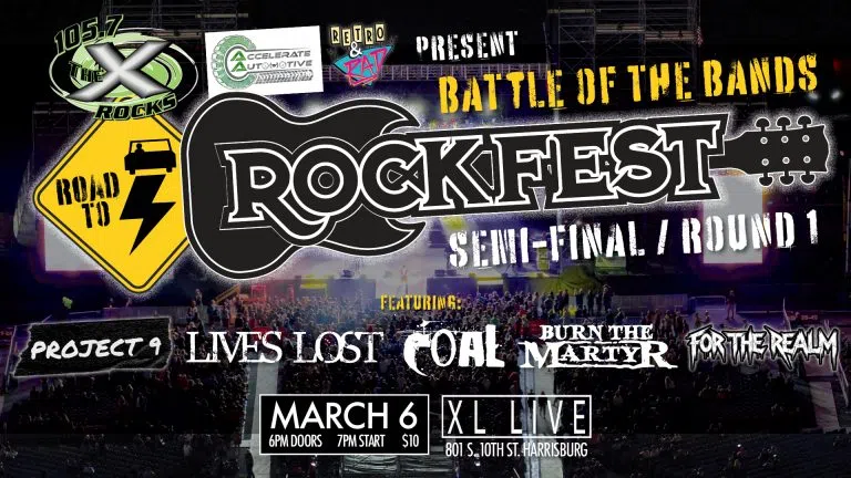 Join us MARCH 6 at XL LIVE in Harrisburg for ROUND 1 of our ROAD TO ROCKFEST - BATTLE OF THE BANDS competitions