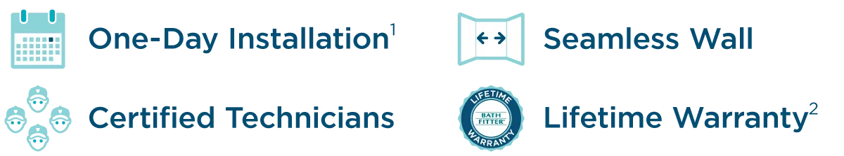 *Subject to limitations. See location for details. Offer must be presented and used at time of estimate only. May not be combined with other offers or applied to previous purchases. Valid only at select Bath Fitter locations. Plumbing work done by P.U.L.S.E. Plumbing. Daniel Paul Hemshrodt MD MPL #17499, Richard D. Reustle Jr. NJ MPL #10655, Richard D. Reustle Jr. DE MPL #PL-0002303, Richard D. Reustle Jr. MD MPL #82842, Daniel Paul Hemshrodt VA MPL #2710064024, Mike McIntosh IA MPL #18066, Nate Beenken IA MPL #13469, Jason Haught OH MPL #37445, Jason Haught WV MPL #PL07514, Mark Bunch MI MPL #8111651. PA HIC #PA017017, NJ HIC #13VH03073000, WV HIC #WV053085, MD HIC #129346, VA HIC #2705155694, MD HIC #122356, VA HIC #2705096759, IA HIC #C112725, WV HIC #WV038808, MD HIC #129995, VA HIC #2705146537, DC HIC #420213000044. Each Franchise Independently Owned And Operated By Bath Saver, Inc, Delmarva Bath, LLC, Iowa Bath Solutions, LLC, Ohio Bath Solutions, LLC, Mid Atlantic Bath Solutions, LLC.