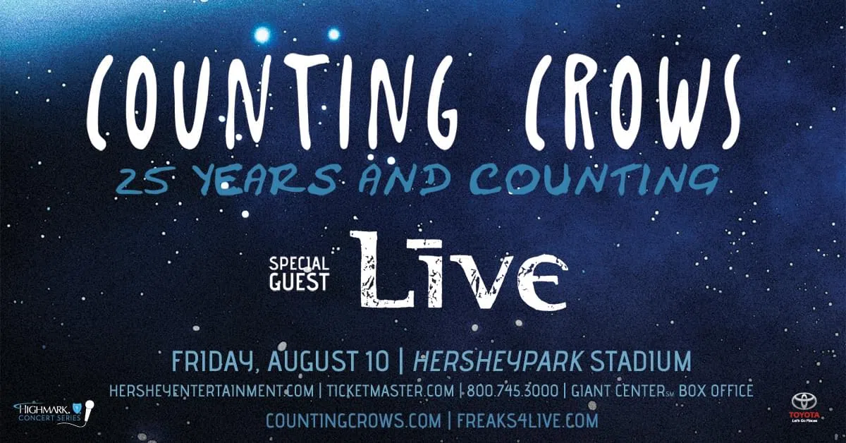 105.7 THE X welcomes COUNTING CROWS with special guest LIVE to HERSHEYPARK STADIUM on Friday, August 10th.